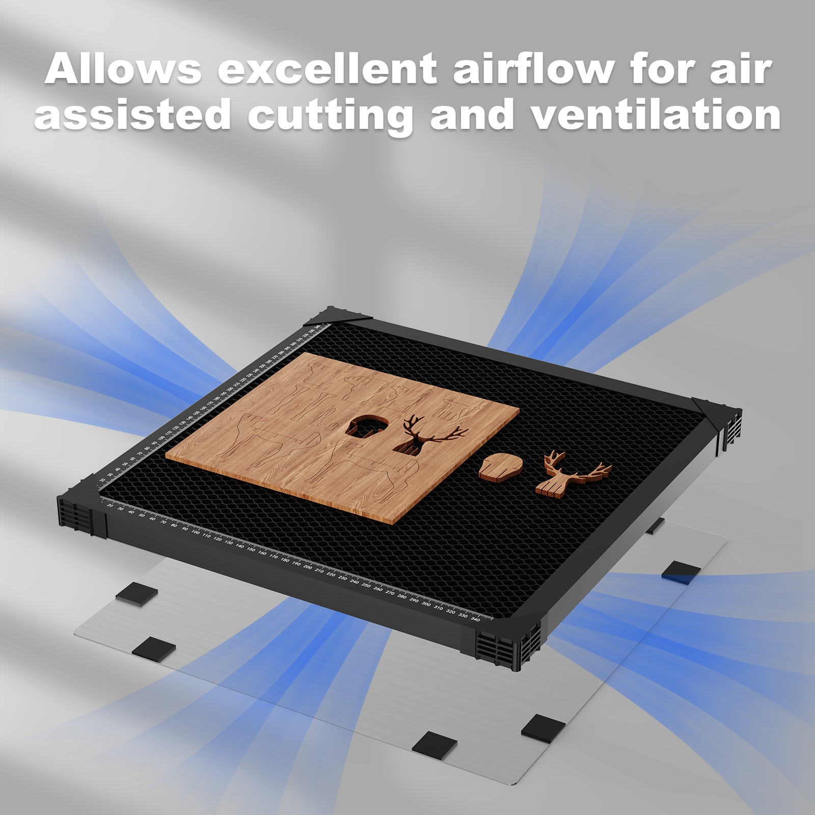 • Used to place materials to be cut or engraved, working in combination with the aluminum panel to protect your desk.