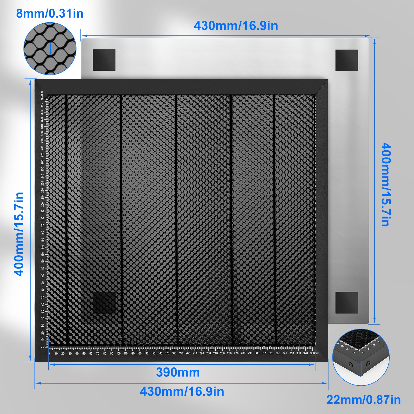 The honeycomb workbench panel set is a necessary part for laser cutting and engraving machines. It can be used to place the materials to be processed, protecting your desk and improving your creation.